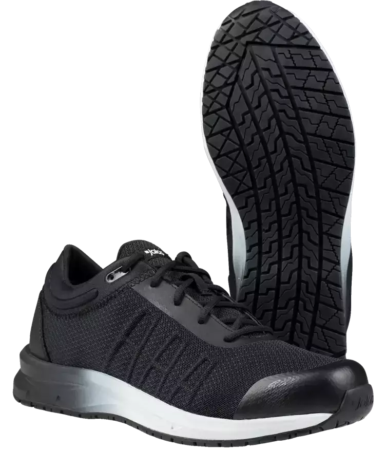 JALAS SpOc 5392, Mukava ja sertifioitu työjalkine palvelualalla työskenteleville, jotka ovat jaloillaan koko päivän. Jalkineiden kitkaominaisuudet on testattu ja hyväksytty, ja niissä on iskuja vaimentavat monikerroksiset pohjat. Hengittävä tekstiilikangas tekee jalkineista viileät, ja nauhat ja joustava iltin kiinnitys mahdollistavat hyvän istuvuuden. Sukkamainen rakenne parantaa käyttömukavuutta, ja jalkineen ESD-sertifiointi takaa suojan herkille elektronisille laitteille. Kaikki unisex-malleja.