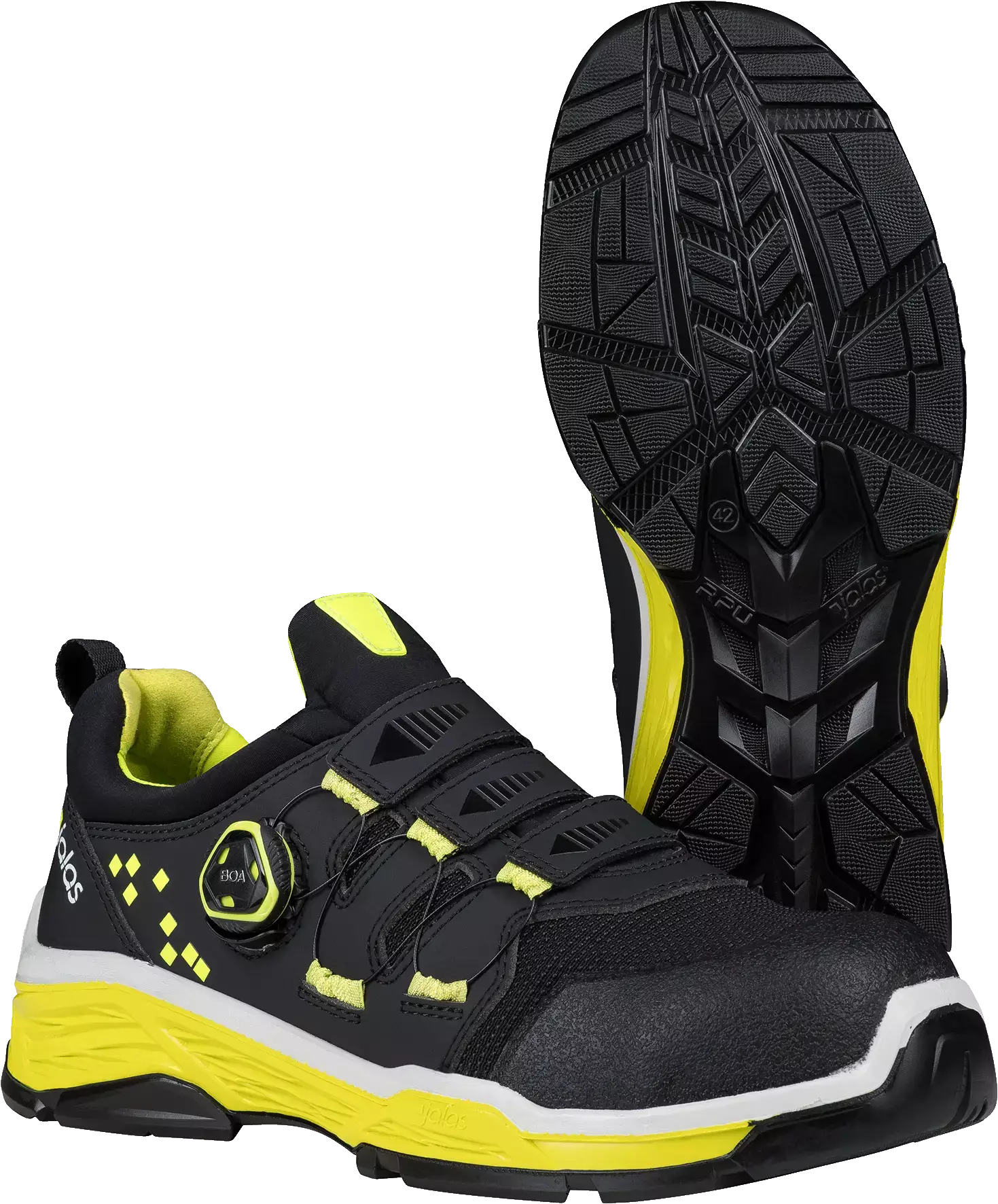 Pehmeä ja vettähylkivä turvajalkine, joka tarjoaa tehokasta suojaa. Parasta pehmeyttä ja käyttömukavuutta pehmeän ja vakaan TIO (Three In One)-RPU-kitkapohjan ansiosta, joka estää pitkäaikaisten jalka- ja selkävammojen syntymisen. Kolmipaneelinen BOA®-kiinnitysjärjestelmä mahdollistaa pehmeän, täydellisen ja yksilöllisen istuvuuden. Jalkineessa on alumiininen varvassuoja ja pehmeä tekstiilinen naulaanastumissuoja. Uusi Jalas-teknologia, jossa kolme pohjaa yhdessä.