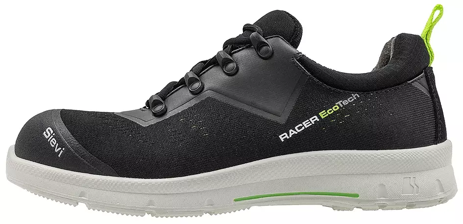 Racer EcoTech jalkineissa on maksimoitu kierrätysmateriaalien käyttö. Turvajalkineissa on alumiinivarvassuoja ja tekstiilinaulasuoja.