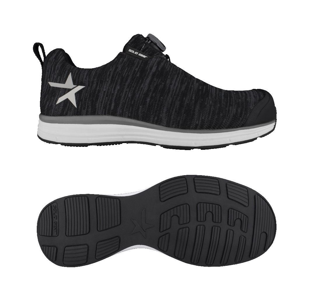 SOLID GEAR Haze on seuraavan sukupolven urheilullinen turvajalkine. Ainutlaatuinen tuplatiheyksinen EVA-välipohja nostaa mukavuuden seuraavalle tasolle. Turvajalkine ei ole koskaan ollut näin lähellä urheilujalkinetta. Saumaton StarKnit-päällinen tekee Haze-jalkineista erinomaisen hengittävät, istuvat ja joustavat. ESD-toiminto standardin BS EN 61340-4-3:2002 mukaisesti.