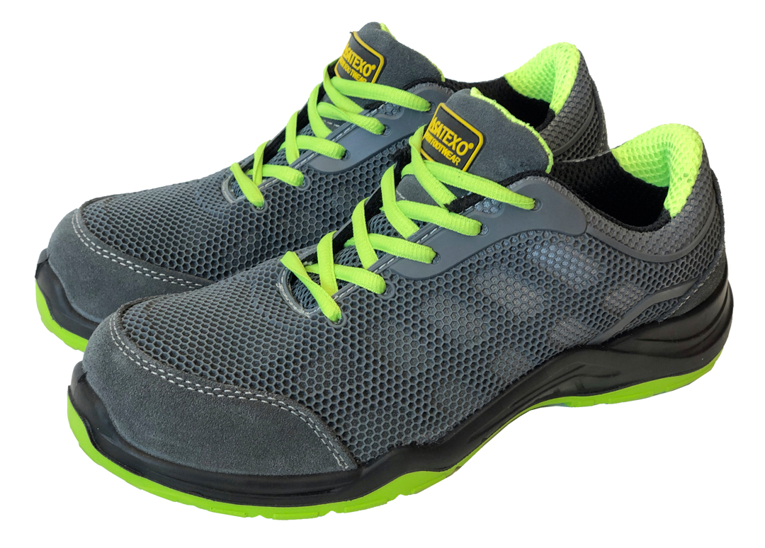 Sporttinen ja kevyt lyhytvartinen turvakenkä KUREGI, komposiittikärki ja kevlar naulaanastumissuoja, kantavaimennettu, antistaattinen ja öljynkestävä pohja,