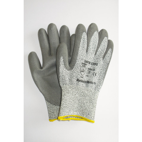 Materiaali: ympäristöystävällinen Bio HDPE kuitu, nylon ja elastaani. Bio HDPE kuitu on valmistettu sokeriruo'osta biohajoavaksi vähähiilidioksidipäästöiseksi ja kestäväksi. Koot: 7- 11 - erittäin hyvä istuvuus, joustavuus ja kestävyys - viiltosuojaluokka 4/D - pu -pinnoitettu kämmen osa - ohut 13G