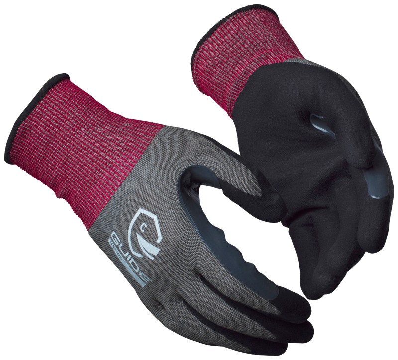 Guide 6604 tarjoaa sekä tehokkaan viiltosuojan että hyvän sormituntuman. Nitriilipinnoitteen ansiosta käsine on notkea ja tarjoaa pitävän otteen. Viiltosuojataso C, kosketusnäyttötoiminto, tehokkaat vahvikkeet peukalon ja etusormen välissä. Täyttää kontaktilämpövaatimukset, taso 1.