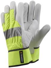 TEGERA® 198, Nahkakäsine, puolivuori, 1,0-1,2 mm naudan pintanahka, nailon, jersey, Cat. II, huomioväri, heijastin, raskaat työt