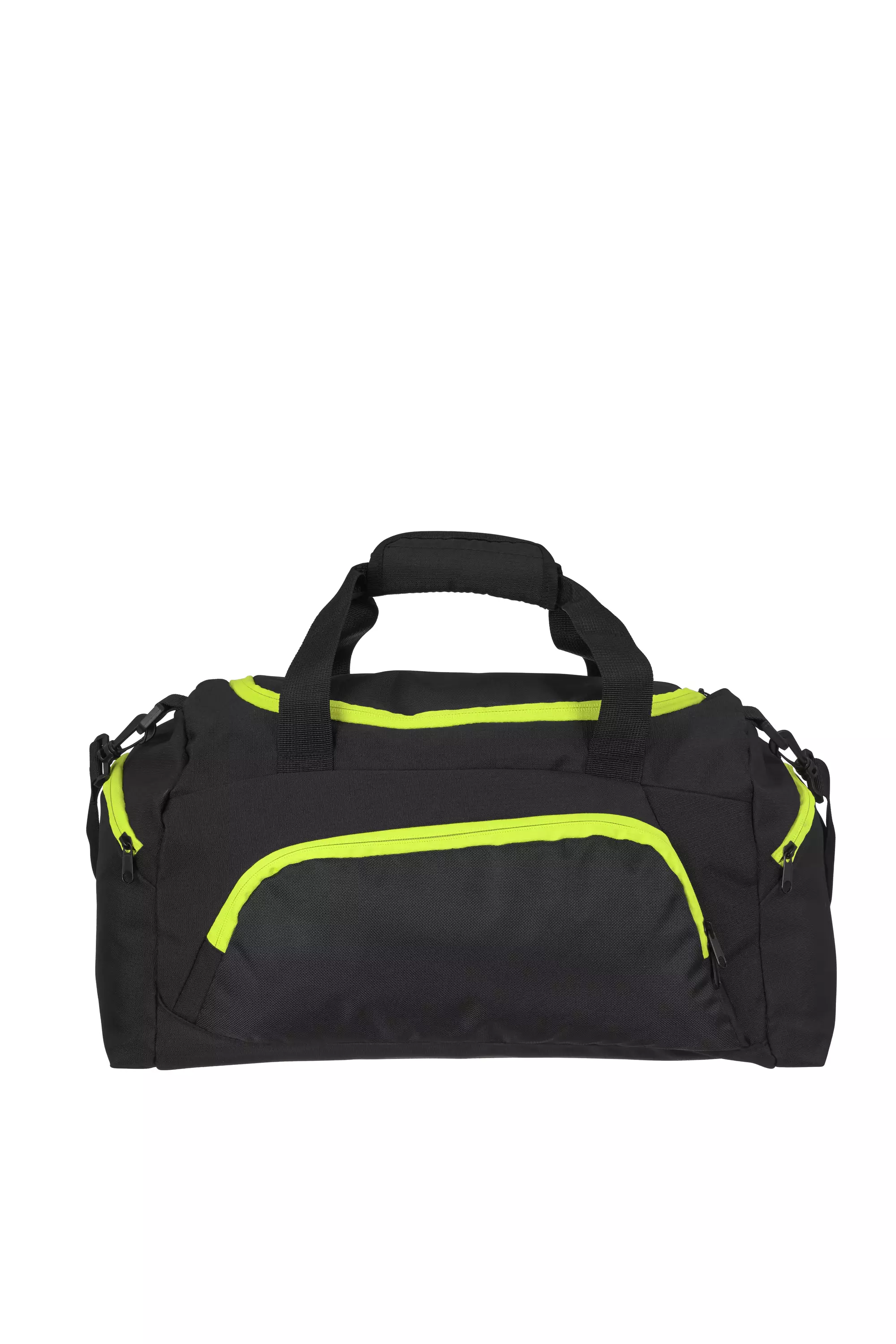 Kontrastiväreillä tyylitelty sporttikassi etutaskulla ja useilla sivutaskuilla. Pehmustettu kantokahva sekä säädettävä ja irroitettava olkaremmi. Tilavuus: n. 23 litraa