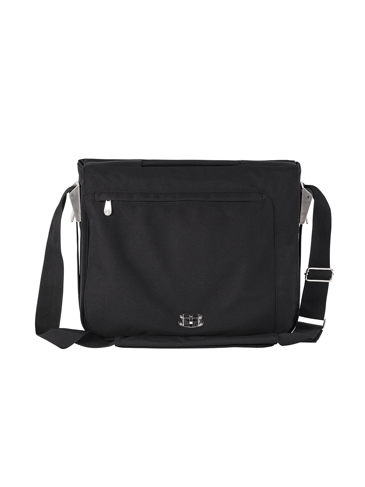 Laukussa on leveä kantohihna ja tukevat soljet. Mukana tulee ylimääräinen harmaa kantohihna. Pehmustettu tasku tietokoneelle. Isot ulkotaskut edessä ja takana. Läpän alla tasku, jossa paperisi pysyvät hyvässä järjestyksessä. Materiaali: 100% tvill-kangas. Mitat: 40x12x33 cm.