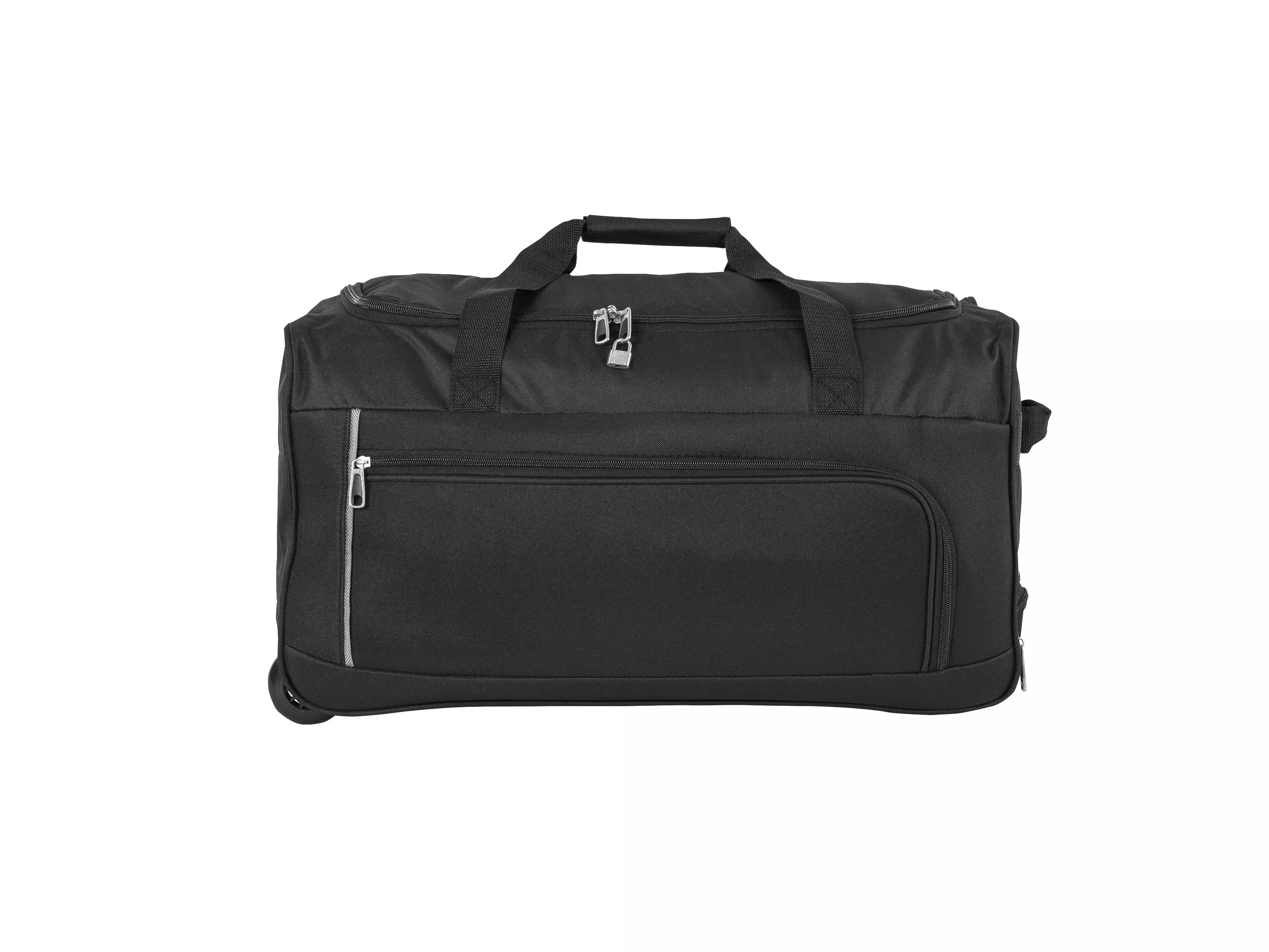 Renkaallinen trolley-laukku, jonka päälokerossa on sisätasku. Laukussa on lisäksi vetoketjullinen U-aukko, iso etutasku ja irrotettava, säädettävä olkahihna. Alumiininen teleskooppivetokahva. Tilavuus: n. 52 l. Mitat: 58x31x31 cm.