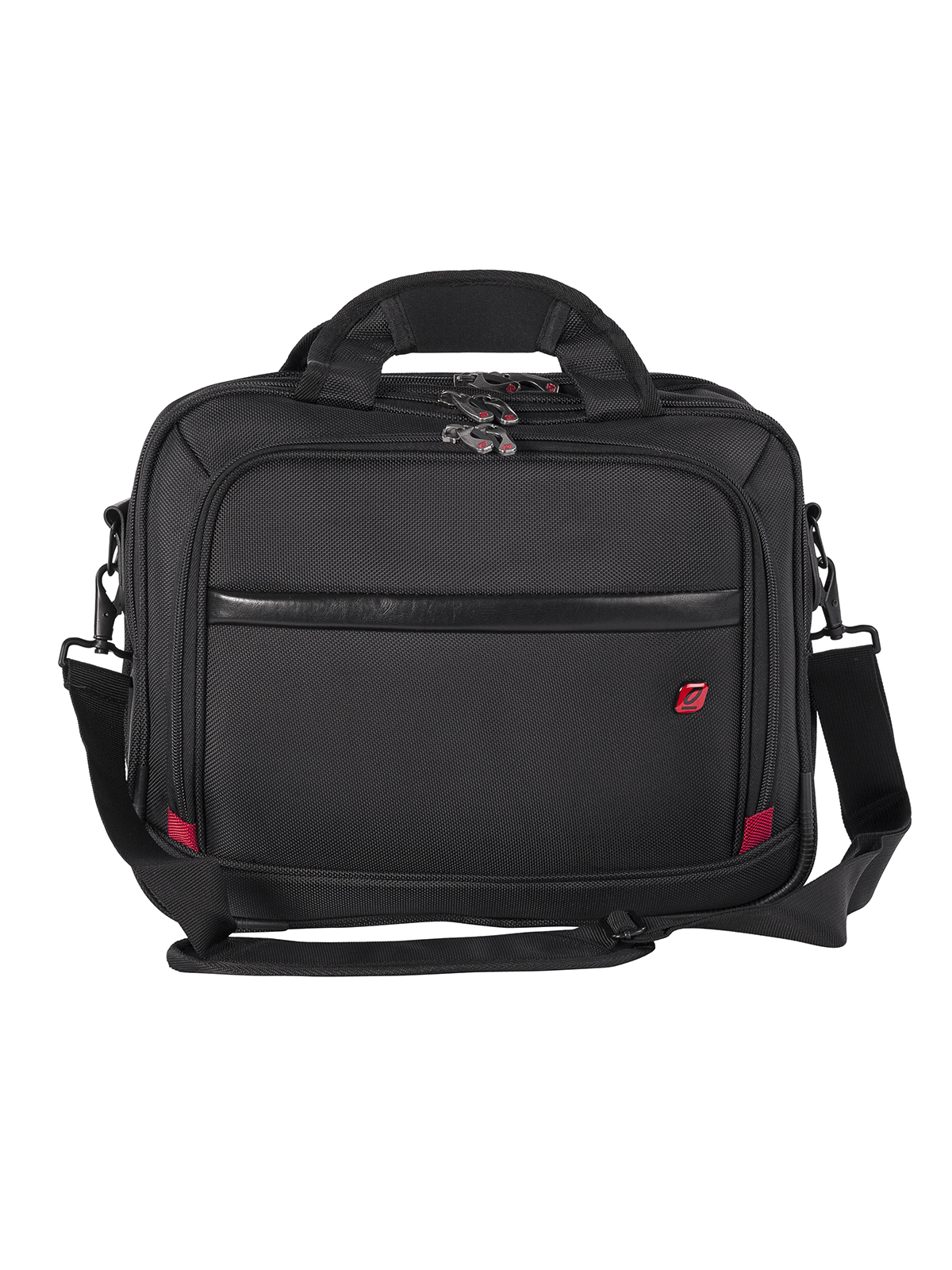 Tietokonelaukussa on tasku 15” kannettavalle tietokoneelle sekä oma lokero asiakirjoille. Edessä tasku. Lisäksi omat taskut kynille, käyntikorteille jne. Tasku takaosassa. Vuorikankaassa on hienostunut kuvio. Irrotettava olkahihna. Neopreenilla vahvistettu magneettikahva lisää käyttömukavuutta. Tämän laukun voit ripustaa trolleyyn. Yksityiskohtina pienet punaiset/harmaat somisteet. Tilavuus: 12 litraa. Mitat: 37x11x30 cm.