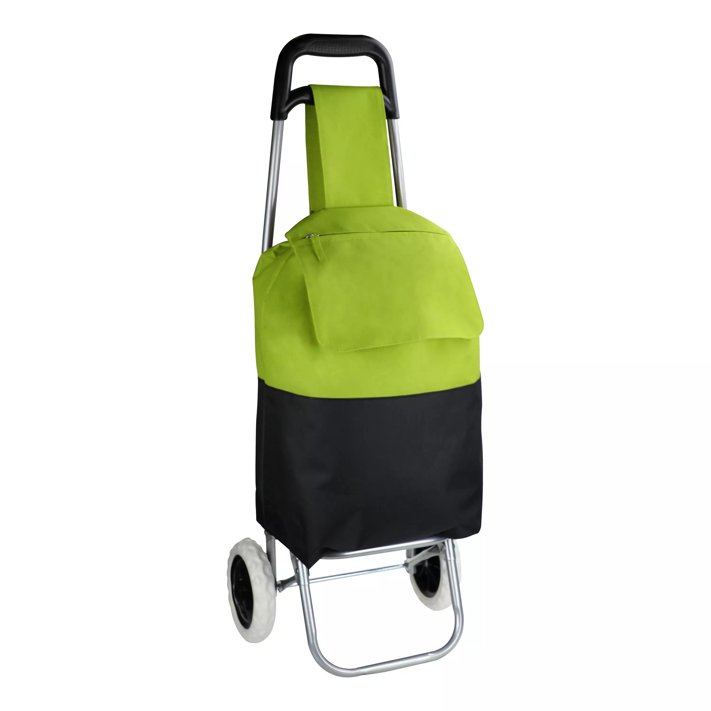 Kauppakassi pyörillä, jossa vahva runko. Sulkeutuu narulla ja läpässä olevalla tarralla. Vetoketjullinen tasku läpän alla. Taitettava rakenne ja irrotettavat pyörät. Kassi ja pyörät toimitetaan irrallisina jotta merkkaus kassiin olisi helpompaa. Helppo koota. Tämä malli on suosittu markkinoilla. Kokonaispituus laukulle 91 cm. Yksittäin pakattuna muovipussissa.