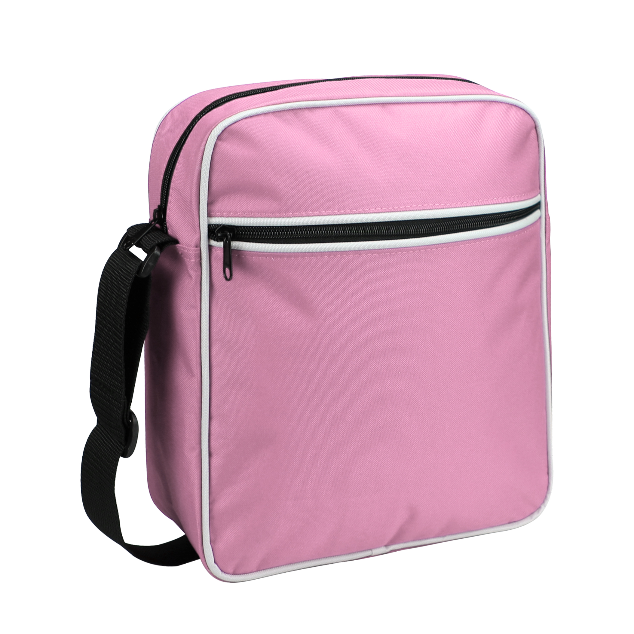 Retrohenkinen olkalaukku, jossa valkoiset tehoste tereet. Laukun materiaali on valmistettu kierrätetyistä PET-juomapulloista. Materiaali suojaa hyvin kosteudelta ja vesisateelta. Edessä pienempi vetoketjutasku. Säädettävä kantohihna. Laukku sopii hyvin vapaa-aikaan tai matkalle.