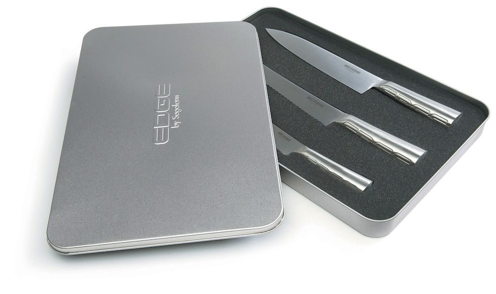 EDGE aloitusveitsisetti Hyvä aloitusveitsisarja, johon kuuluu kolme tarpeellisinta keittiön perusveistä: Kokkiveitsi 21 cm, leipäveitsi, fileeveitsi. Veitset ovat perinteisiä ja suosittuja... Lue lisää