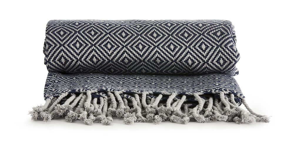 Huopa ristitoimikas, sininen Pehmeä, ylellinen huopa, jossa klassinen vinoneliösidos ja lyhyellä sivulla hapsut. Upea viltti sopii varmasti jokaiseen kotiin.