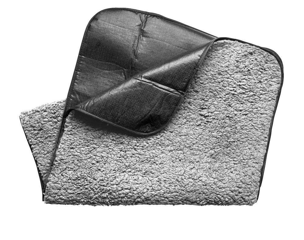 Istuinalusta, harmaa Ihana suorakulmainen piknikhuopa. Pehmeän viltin päällä on mukava istua. Käytännöllinen, vettähylkivä ulkopuoli. Helppo kantaa kahvan ansiosta.