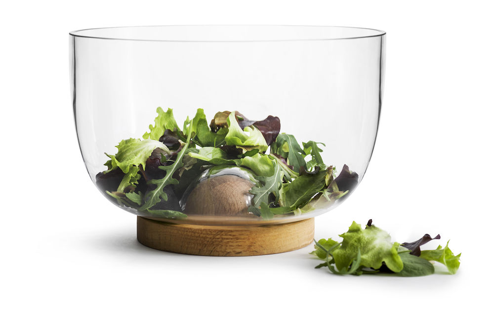 Upeasti muotoiltu tarjoilukulho, jonka alla oleva tammilevy on irrotettava ja suojaa pintoja. Sopii erinomaisesti salaatille ja hedelmille. Muista öljytä alusta säännöllisesti.
