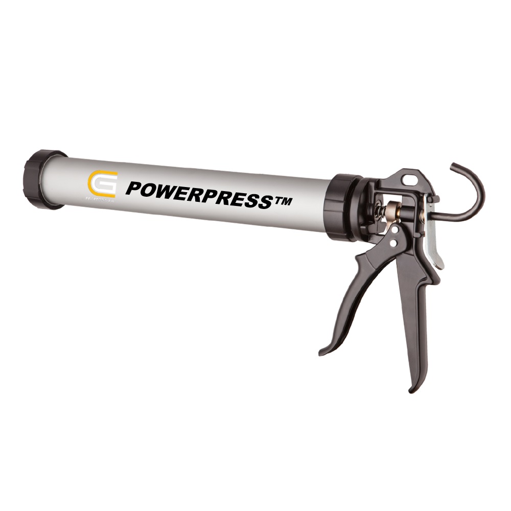 Erittäin voimakas monitoimipuristin saumaus-, tiivistys- ja liimausmassoille, jotka on pakattu 300-600 ml kalvopakkauksiin tai 150-400 ml patruunoihin. Kalvopakkauspuristin/patruunapuristin. 400 kg puristusvoima.