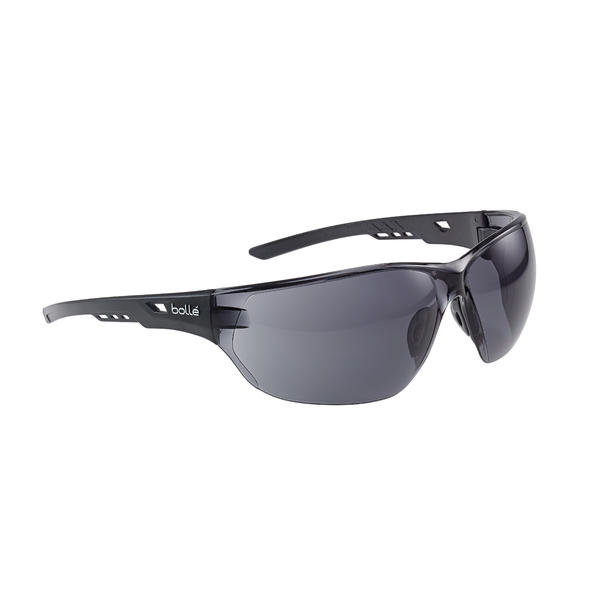 Erittäin laajan panoraamanäkymän tarjoavat smoke-linsseillä varustetut suojalasit työkäyttöön ulkoilmaolosuhteisiin. Kaareva malli, joka soveltuu myös kapeampikasvoisille käyttäjille. Luistamaton nenäsilta. Voidaan varustaa lisävarusteisella pääpannalla.