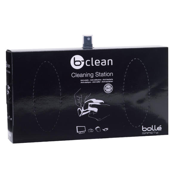 Puhdistusasema kaikenlaiselle optiikalle. Pahvinen yhdistelmäpakkaus, joka sisältää B-Clean Lens Cleaner 250 ml puhdistussuihkeen sekä 2 x 200 puhdistusliinaa. Voidaan pitää pöydällä tai ripustaa seinälle. Suositellaan pidettäväksi näkyvässä paikassa kulkuväylällä, mitä pitkin työntekijät liikkuvat työskentelyalueelle, jotta silmiensuojaimet pysyvät puhtaina. Tekee pinnoista anti-staattiset vähentäen pölyn ja lian tarttumista, anti-bakteeriset ja vähentää heijastumia. Soveltuu työhön ja vapaa-aikaan. COLTS-laboratorion sertifioima silmiensuojainten ylläpitotuote.