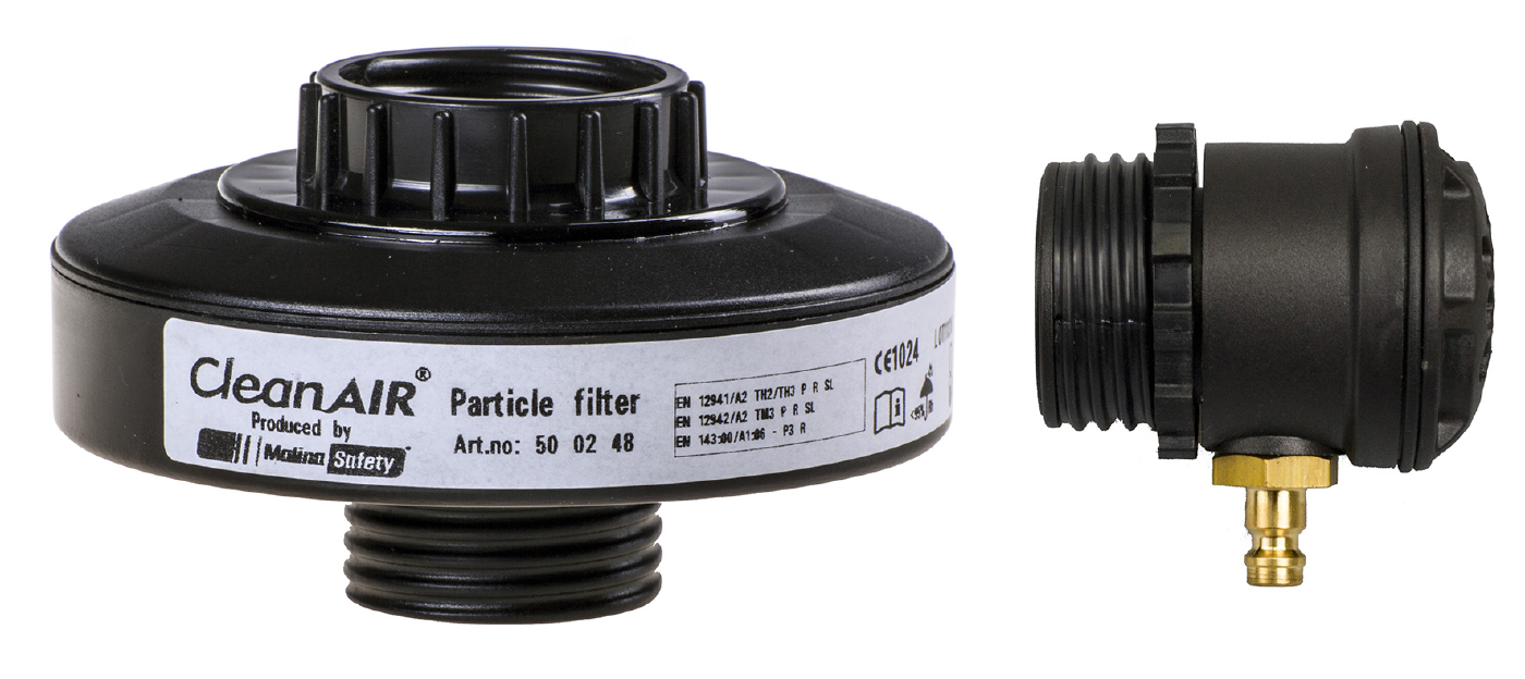Liitin, jolla CleanAIR® Pressure yhdistetään valittuun suodattimeen. Sisältää P3 suodattimen.