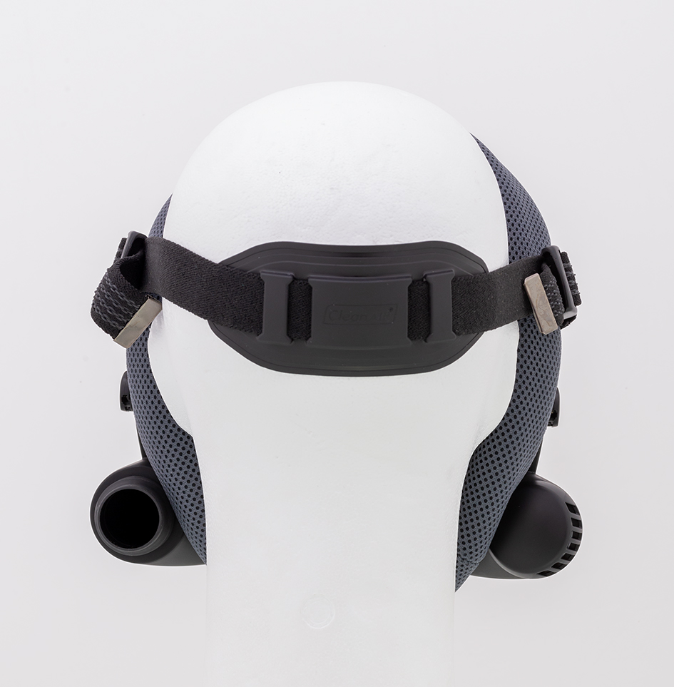 Pukemista helpottava kaksipiste-nauhasto CleanAIR® UniMask kasvonsuojaan.