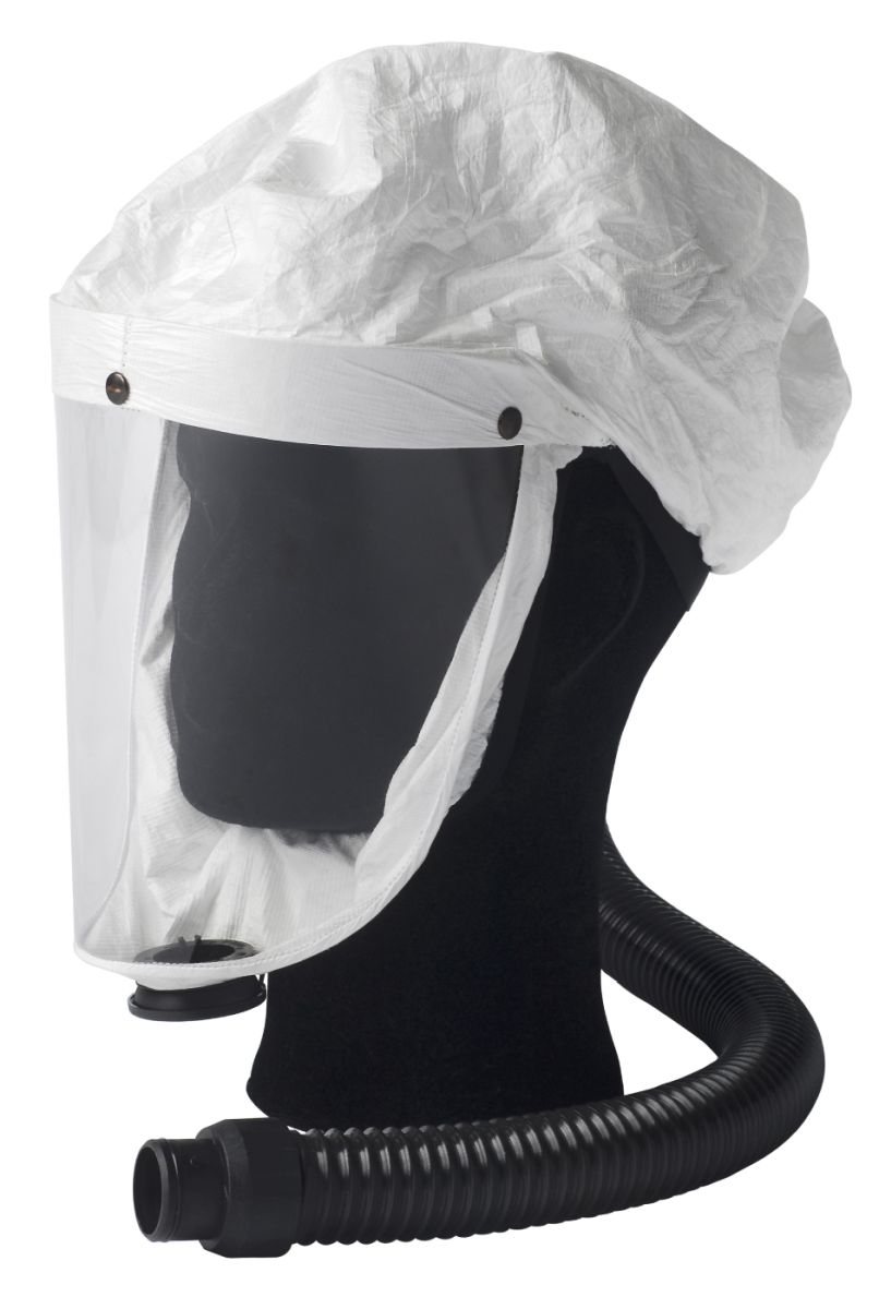 Erittäin kevyt huppu, joka suojaa kasvoja ja päälakea. Vaihdettava huppu Tyvek-materiaalia helposti säädettävällä nauhastolla. Saatavana yhtä kokoa. Helposti säädettävä ja mukava kasvotiiviste polyamidi/lycra. Näkölevy PETG-materiaalia. Vastaa EN 12941:1998 luokan TH3 vaatimuksia.