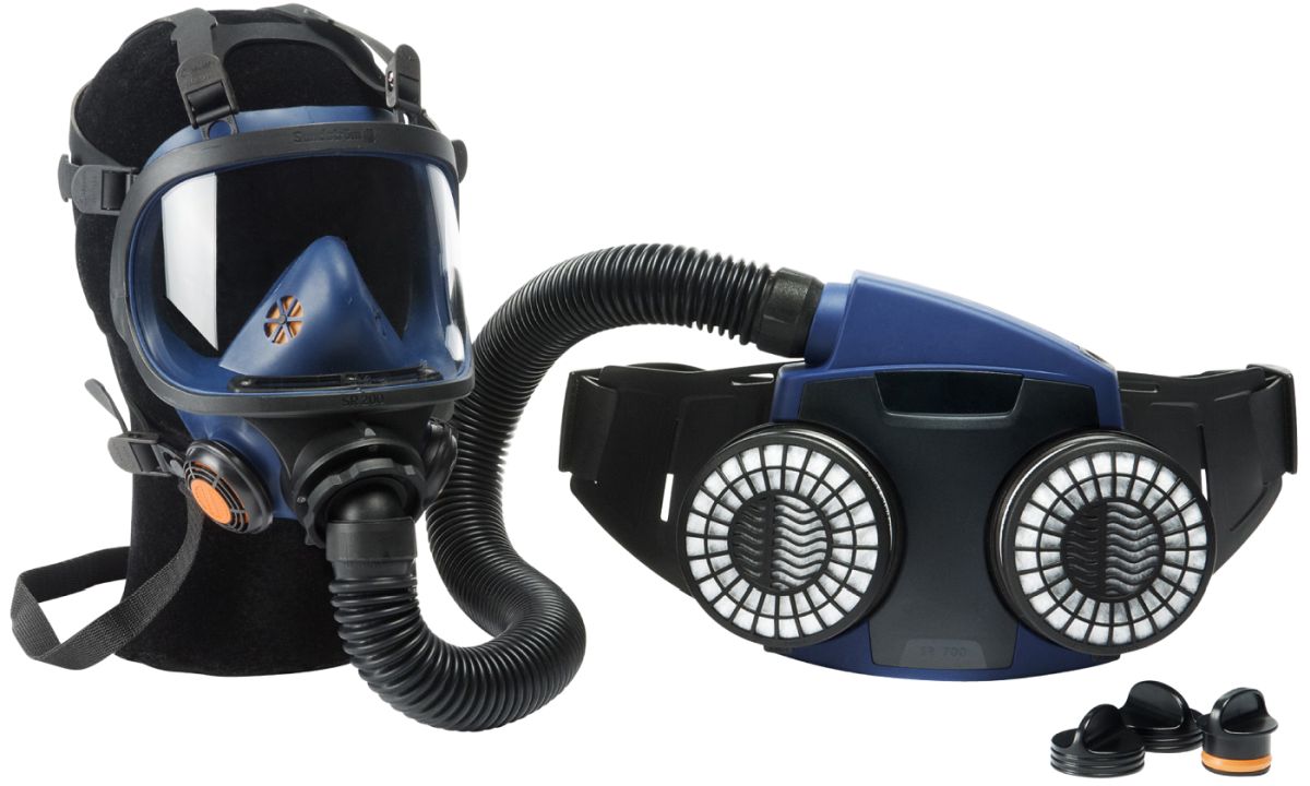 SR 700 Hiukkassuodatinpuhallin. Paketin sisältö: puhallin, 2 kpl P3-hiukkassuodattimia, vakioakku, latauslaite, vyö ja käyttöohje.SR 200 Kokonaamari.SR 550 Letku.Hyväksynnät: EN 12942:1998 luokka TM3.IP 67.Paketti on suunniteltu erityisesti raskaisiin, kuumiin tai pitkäkestoisiin töihin.