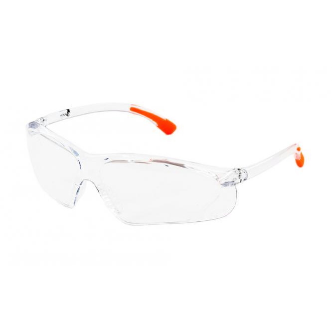 Kevyet suojalasit kirkkaalla linssillä. Liukuesteet/pehmusteet sangoissa.