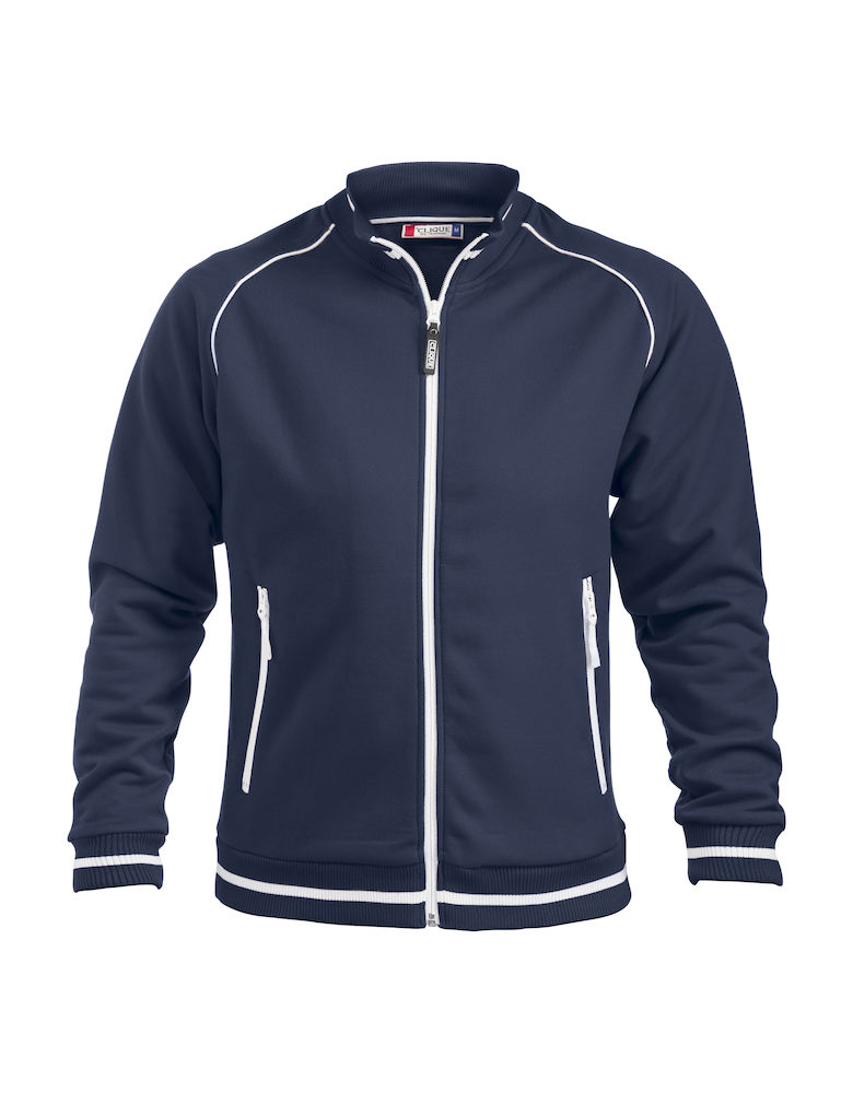 Sporttinen verkkaritakki, jossa mielyttävä harjattu sisäpinta. Tehosteena kontrastiraidat kauluksessa, helmassa ja hihansuissa. Etutaskuissa vetoketjut.