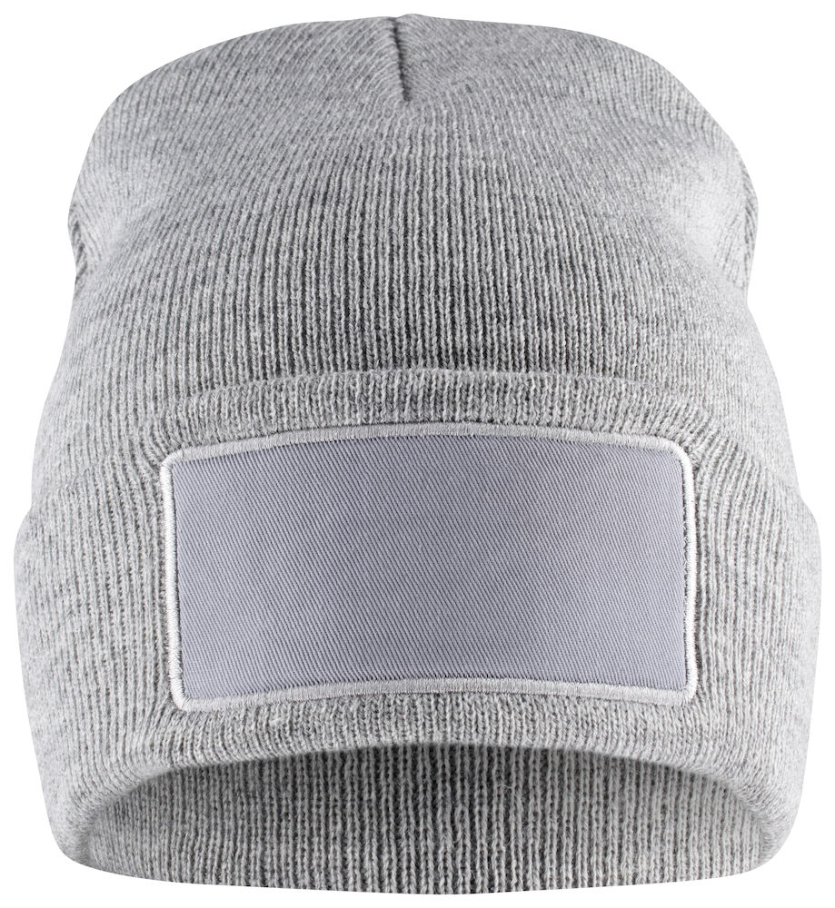 Reunasta käännetty neulospipo. Edessä sileä paikka painatusta varten, koko 4,5 x 9,5 cm.