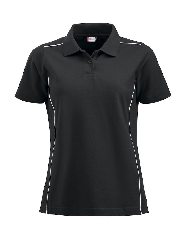 Pikeepaita, jossa kontrastiväriset tereet ja sävy sävyyn napit. Vahvistettu niskasauma ja sivuhalkiot.