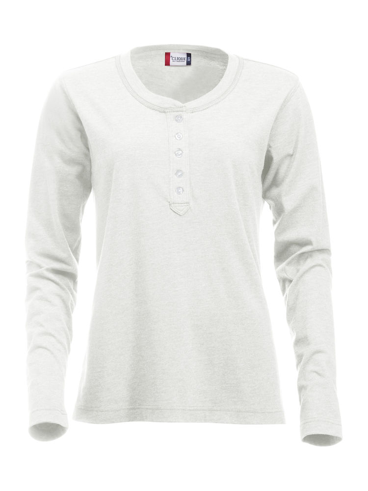 Naisten trendikäs pitkähihainen vaarinpaita, jossa edessä tyylitelty kaulus ja nappilista viidellä napilla. Materiaali: 60 % puuvilla, 40 % polyesteri. Paino: 150 g/m2 Sertifikaatit: OekoTex... Lue lisää