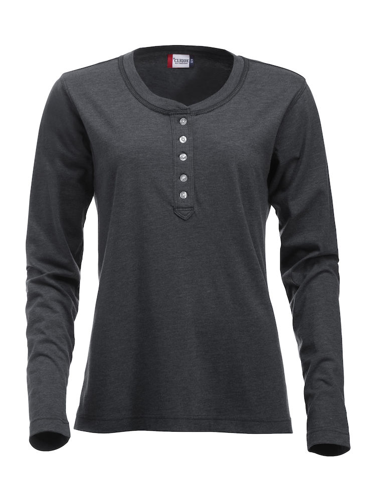 Naisten trendikäs pitkähihainen vaarinpaita, jossa edessä tyylitelty kaulus ja nappilista viidellä napilla. Materiaali: 60 % puuvilla, 40 % polyesteri. Paino: 150 g/m2 Sertifikaatit: OekoTex... Lue lisää