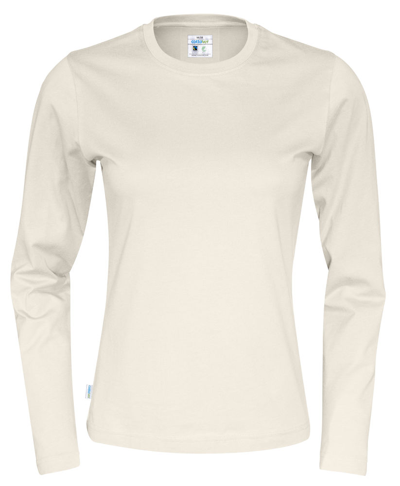Pitkähihainen T-paita naisten mallina. Kavennettu malli, jossa pääntiellä siisti ribbineulos. Valmistettu hienolaatuisesta Reilun kaupan luomupuuvillasta. Värit: valkoinen 100, l.valkoinen 105... Lue lisää