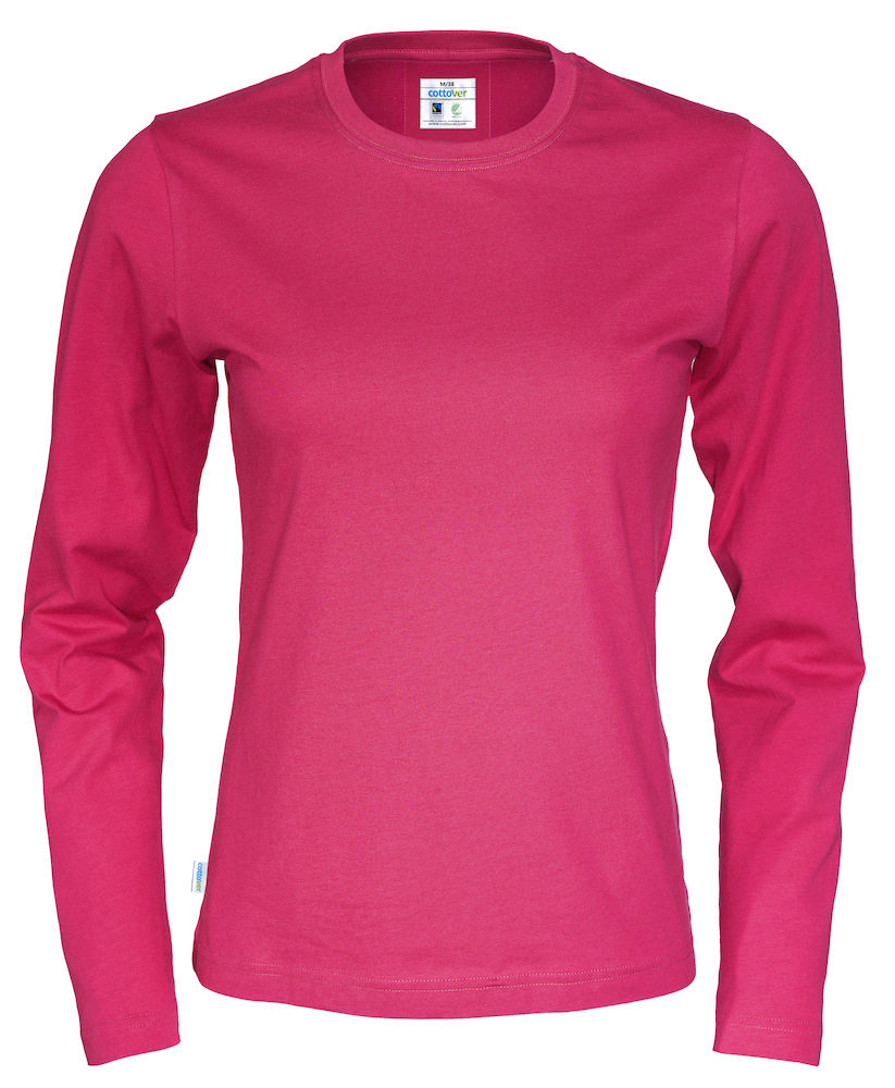 Pitkähihainen T-paita naisten mallina. Kavennettu malli, jossa pääntiellä siisti ribbineulos. Valmistettu hienolaatuisesta Reilun kaupan luomupuuvillasta. Värit: valkoinen 100, l.valkoinen 105, keltainen 255, oranssi 290, pinkki 425, cerise 435, punainen 460, vihreä 645, taivaansininen 725, royal 767, navy 855, violetti 885, antrasiitti 980, musta 990