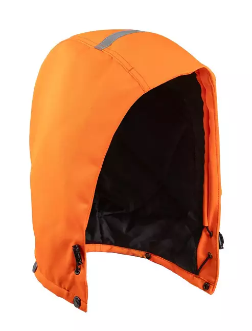Huomiovärinen irtohuppu, joka on kiinnitettävissä muun muassa Dimex 6175R talvitakkiin ja 6203R talvihaalariin.