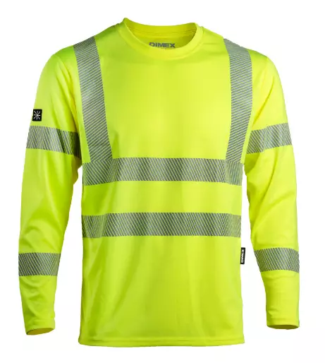 Pitkähihainen huomiovärinen paita painetuilla heijastimilla. Mallissa myös olkaheijastimet.