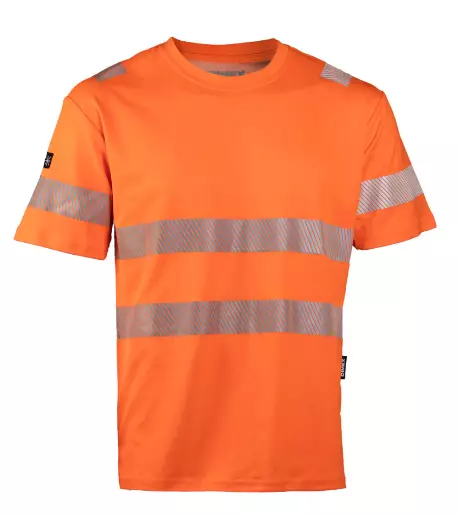 Huomiovärinen T-paita painetuilla heijastimilla. Mallissa myös olkaheijastimet. Mukavan tuntuista puuvilla-polyesteri sekoitemateriaalia.