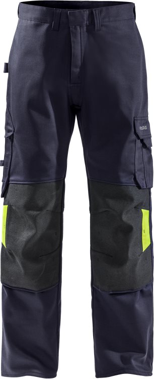Palosuojatut raskaaseen hitsauskäyttöön soveltuvat housut, hitsausluokka 2 suojauksella. Materiaalina vahva ja kestävä puuvilla, joka on käytössä miellyttävän pehmeä. Antistaattinen.