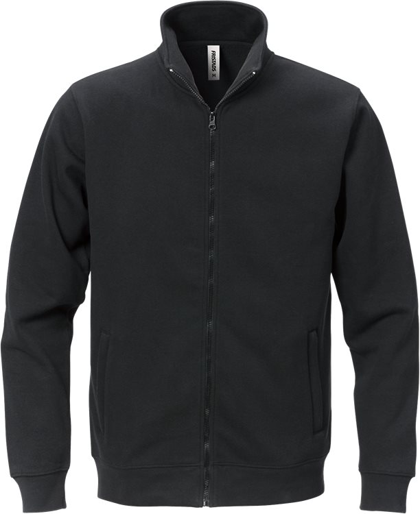 Collegetakki, jossa kokopitkä vetoketju ja vetoketjulliset etutaskut. Materiaali: 80 % puuvilla, 20 % polyesteri. Väri: Musta (940)