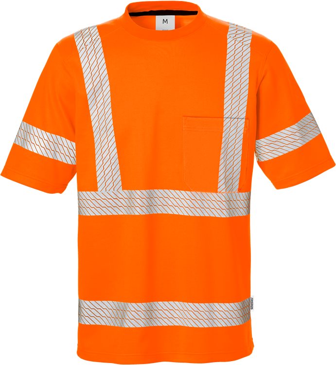 Huomio-t-paita, jonka suuri puuvillaosuus varmistaa mukavuuden. Materiaali: 55% Puuvilla, 45% Polyesteri. Väri: Neonoranssi (230)