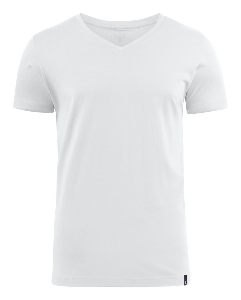 Miesten v-aukkoinen t-paita. Pääntiellä 2-kerroksinen joustava ribbineulos. Öko-Tex-merkitty. Värit: valkoinen (100), tuhkanharmaa (121), punainen (400), haaleansininen (555), t.sininen (600), musta (900)