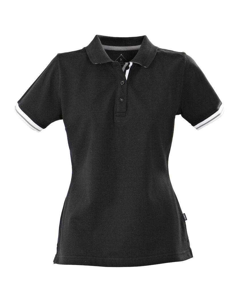 Puuvillapikee, jossa kontrastiväri kauluksen alla, nappilistassa ja hihansuissa. Niskassa puolikuuleikkaus ja peitetty sauma.