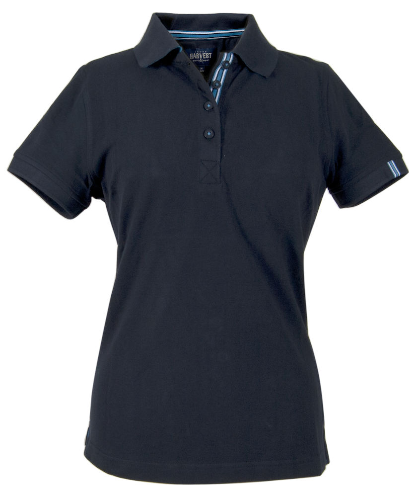 Naisten pikee kammattua puuvillaa. Kontrastivärinen nauha niskassa, nappilistassa, sivussa ja hihassa. Kontrastiväri kauluksen sisäpuolella.