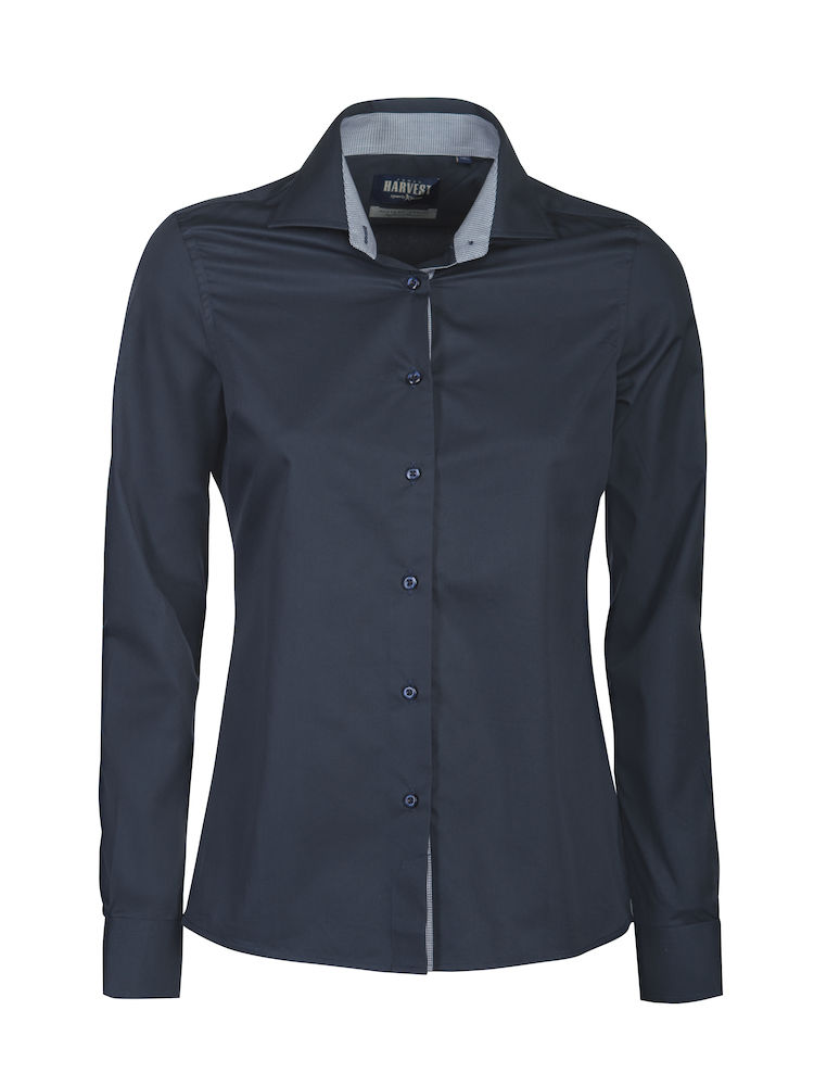 Korkealuokkainen naisten kauluspaita, kampapuuvillaa. Easy Care -käsitelty kangas ja huolitellut saumat kauluksessa ja kalvosimissa antavat viimeistellyn ja tyylikkään ilmeen. Yksivärinen paita, jossa kontrastivärit kauluksessa, nappilistassa ja hihansuissa. Moderni leikkaus, muotolaskokset selässä.