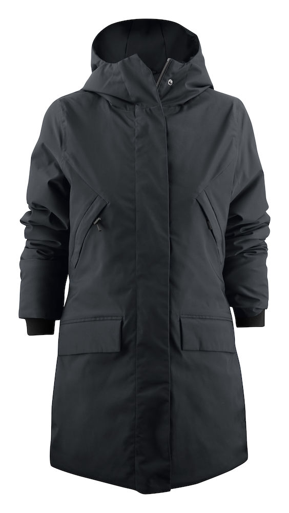 Lämmin ja tyylikäs parka, jossa on aidon untuvan tuntu. Teipatut saumat. Täyte valmistettu kierrätetystä polyesterista. Säädettävä huppu ja vyötärö. Metallinen vetoketju. Magneettinapit etulistassa ja läpällisissä taskuissa. Piilotetut painonapit etulistan ylä- ja alareunassa. Vetoketjulliset rintataskut ja napoleon-tasku. Painonapeilla säädettävät hihansuut ja sisäpuoliset resorit hihoissa.