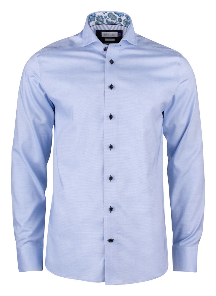 Cut away-kaulus, piilonapituksella. Modernit ja värikkäät kontrasti yksityiskohdat viimeistelevät paidan. Tästä paidasta löytyy joustavuutta sekä non iron -käsittely,