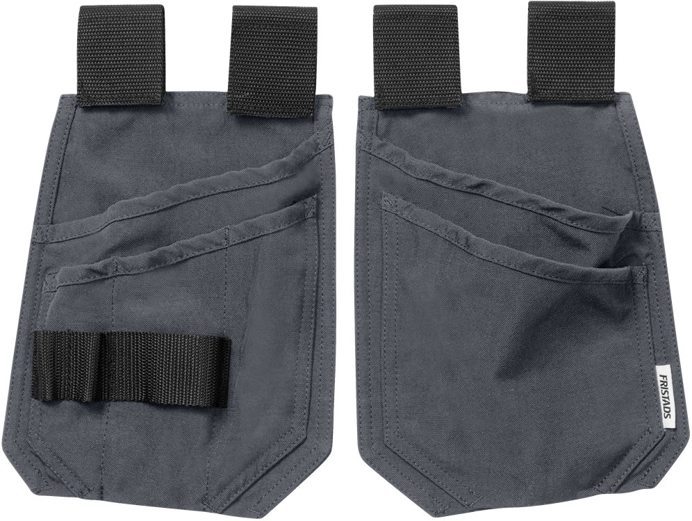 Kaksi CORDURA® riipputaskua, toisessa kolme pienempää taskua ja työkalulenkit, toisessa yksi lisätasku / Kiinnitetään tarrakiinnityksellä / ÖKO-TEX® sertifioitu.
