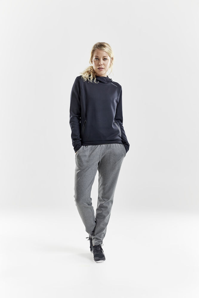 Naisten tyylikkäät collegehousut, joka on valmistettu pehmeästä ja kevyesti harjatusta jersey-kankaasta. Laser-leikatut sivutaskut sekä takatasku. Säädettävä joustava vyötärö.