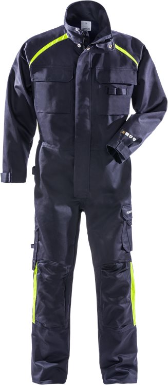 Palosuojattu hitsausumpisuoja vahvasta ja kestävästä materiaalista. Polvisuojataskuissa palosuojatut CORDURA®-vahvikkeet. Kestää vähintään 50 pesukertaa teollisessa pesussa.