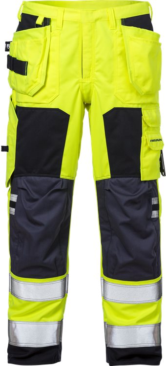 Huomiovaatesertifioidut, itsessään paloturvallisesta materiaalista valmistetut housut. CORDURA®-polvivahvikkeet. Sopivat ATEX-ympäristöihin, ei metalliosia. Hyväksytty teolliseen pesuun.