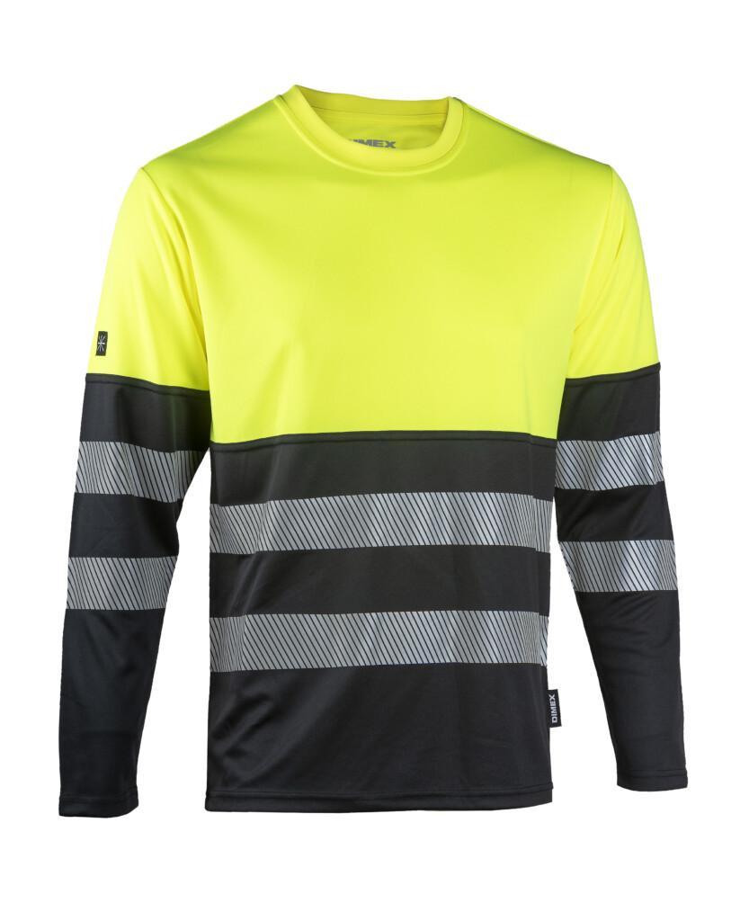 Pitkähihainen huomiovärinen t-paita näkyvyysluokassa 1. Paidan musta alaosa ja hihansuut ovat käyttäjäystävälliset myös hommissa, joissa